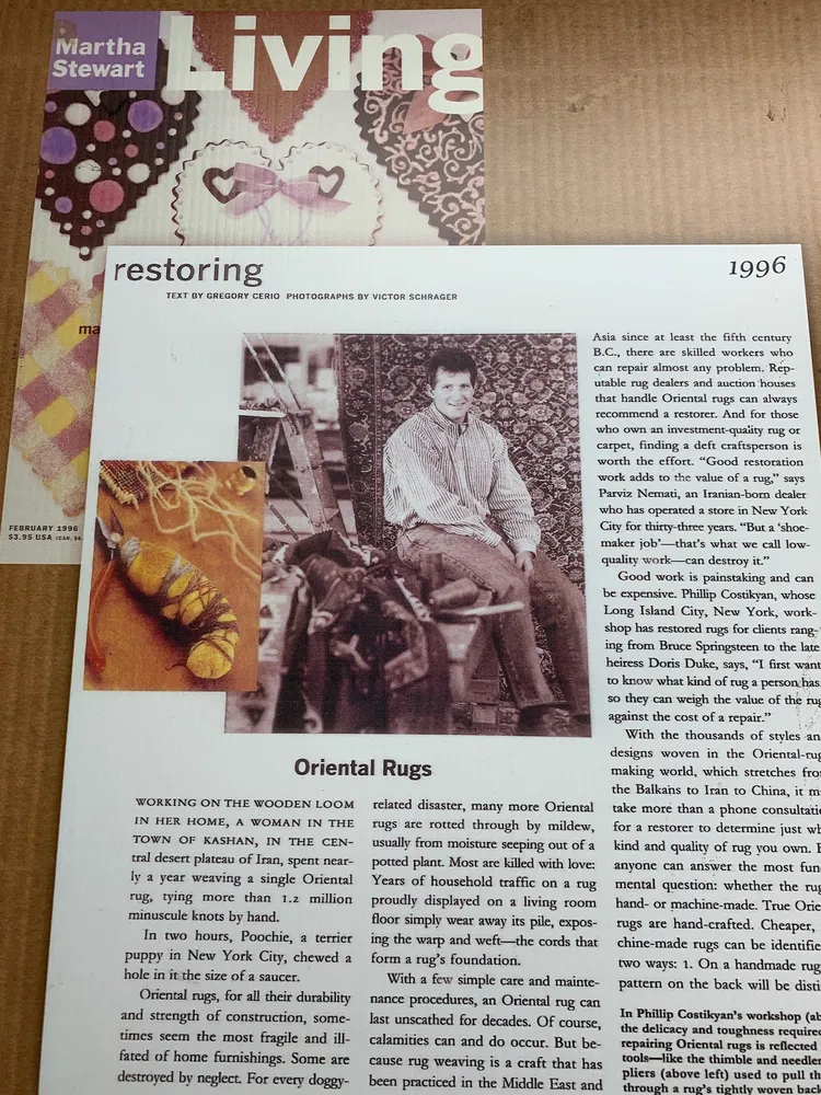Initially, Costikyan lead the sale of unique, antique, and oriental rugs in the United States. Eventually the company evolved to servicing rugs. Today, we can clean, protect, restore, fabricate, install, appraise, and deliver rugs and carpets. We also service drapes, curtains, and upholstery.
